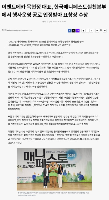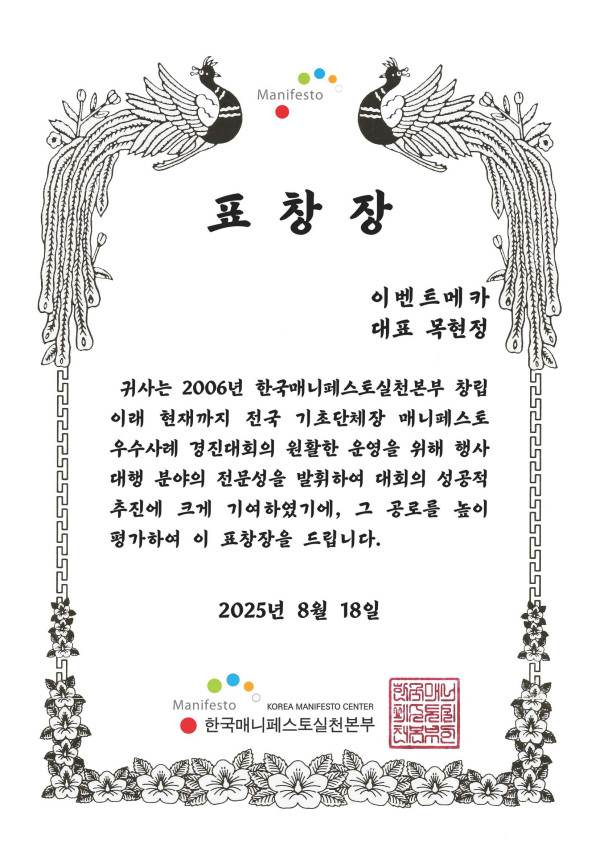 이벤트 기획 전문 기업 이벤트 메카가 ‘ 전국 기초단체장 매니페스토 우수사례 경진대회’에서